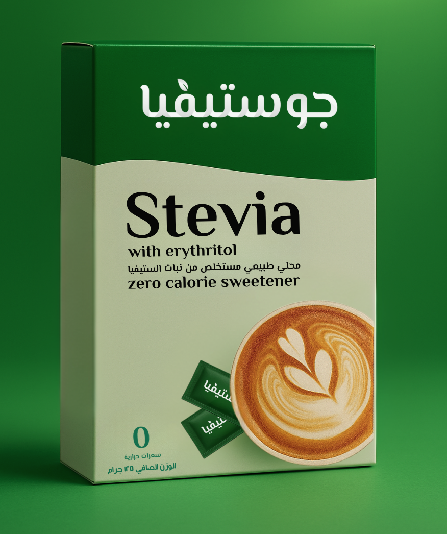 استمتع بتحلية مثالية وصحية مع جوستيفيا – تركيبة طبيعية من ستيفيا وإريثريتول، تمنحك طعم حلو يشبه السكر… بدون أي سعرات تقريبًا!
